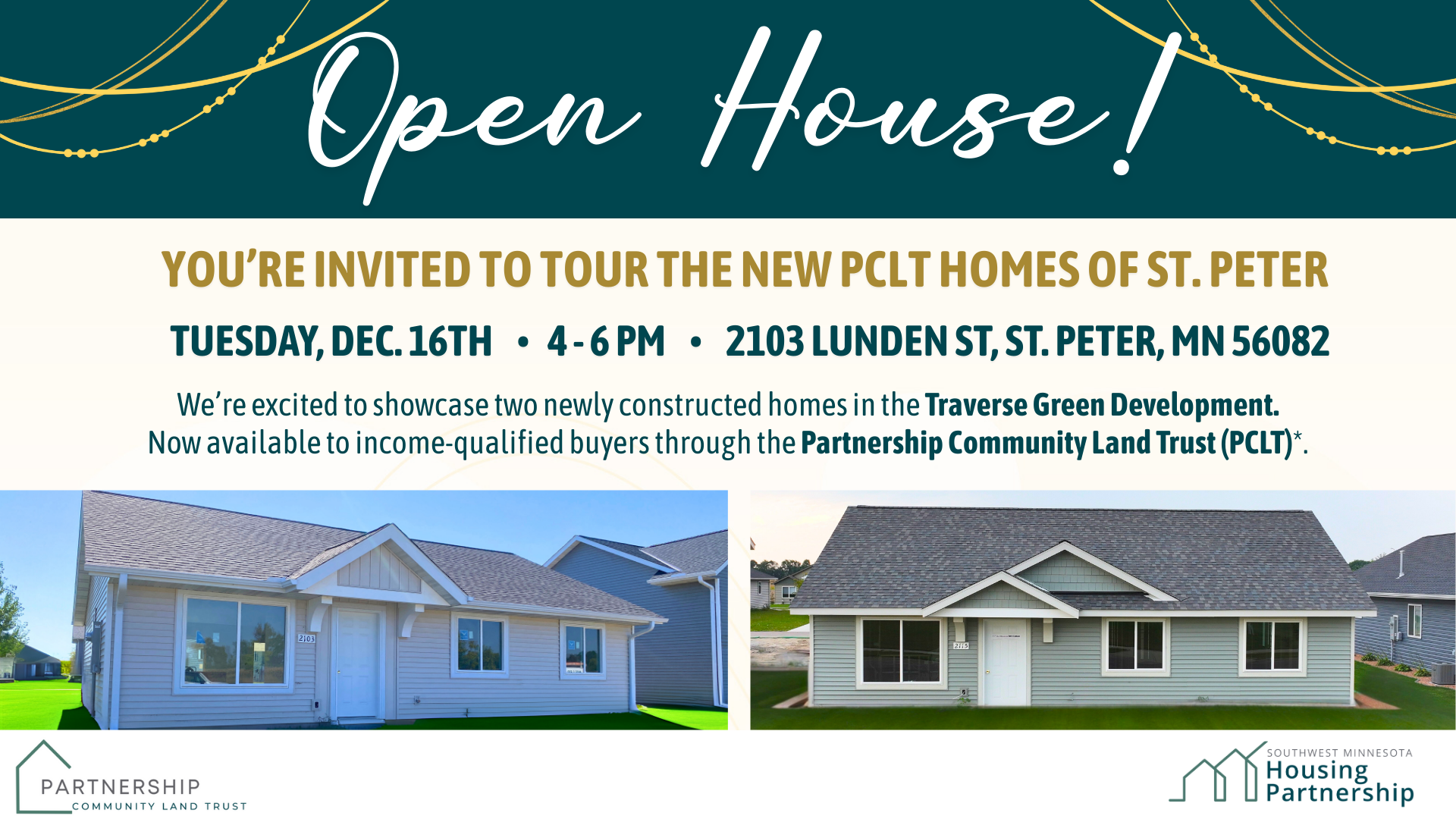 Southwest Minnesota Housing Partnership (SWMHP) invites you to explore the first Partnership Community Land Trust (PCLT) homes in St. Peter—affordable, beautifully built homes designed to create long-term housing stability for the community.
